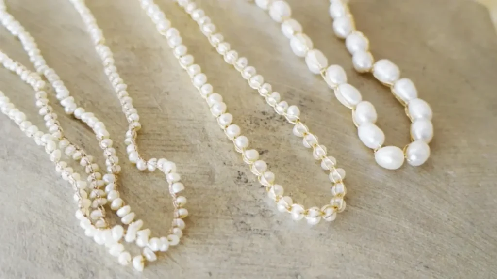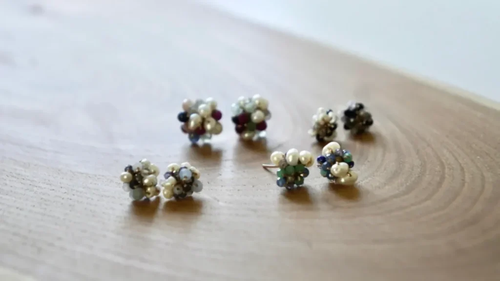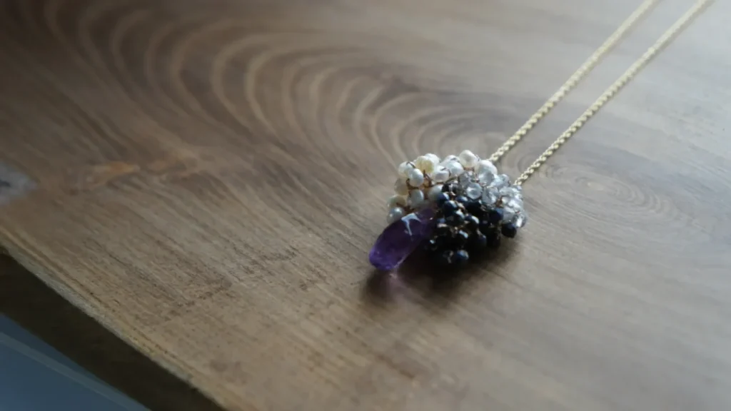 直径2mmの天然石を、刺繍糸で編み連ねました